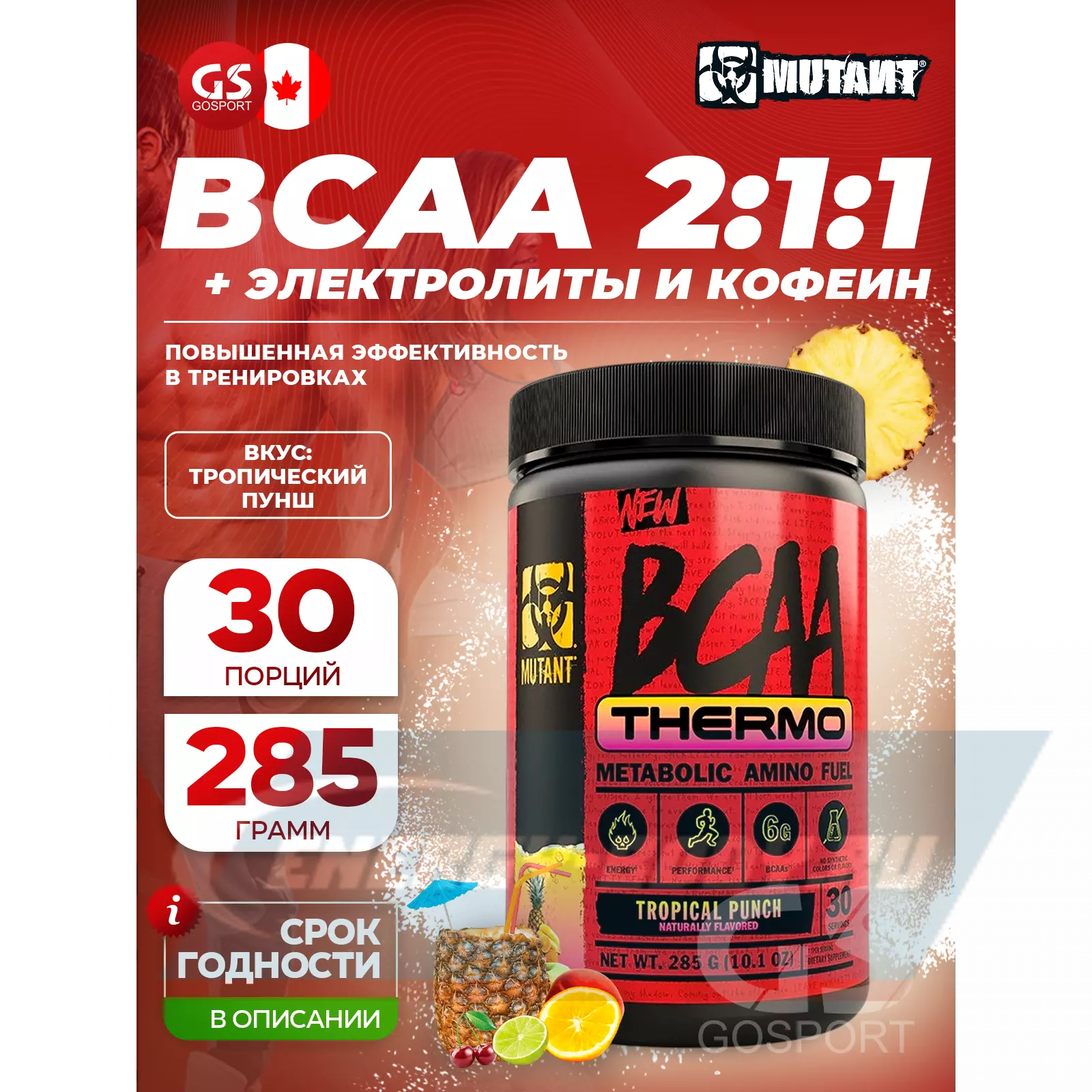 Mutant BCAA Thermo содержит 6 граммов BCAA, смешанных с электролитами, кофеином, BioPerine® и CaloriBurn GP®. Результаты двух клинических исследований показывают, что CaloriBurn GP® обеспечивает в 5 раз больше термогенной силы!