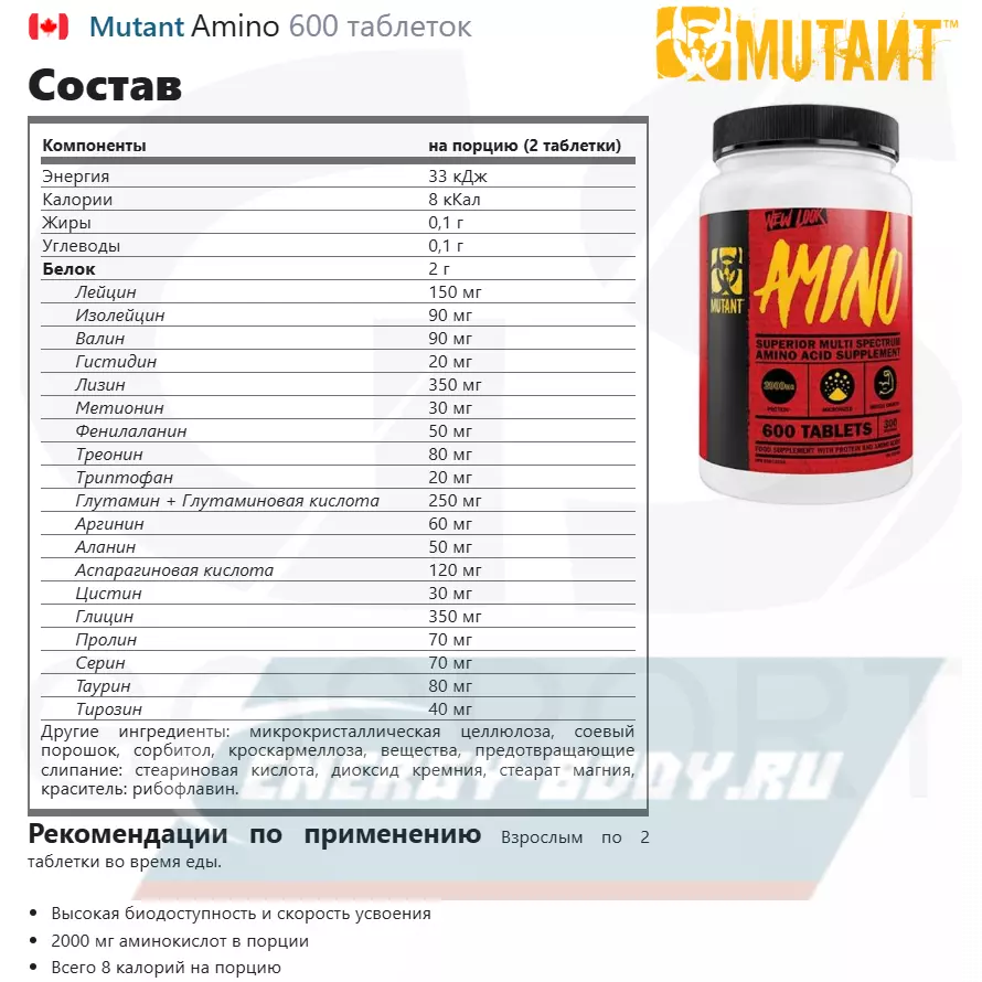 Состав Mutant Amino