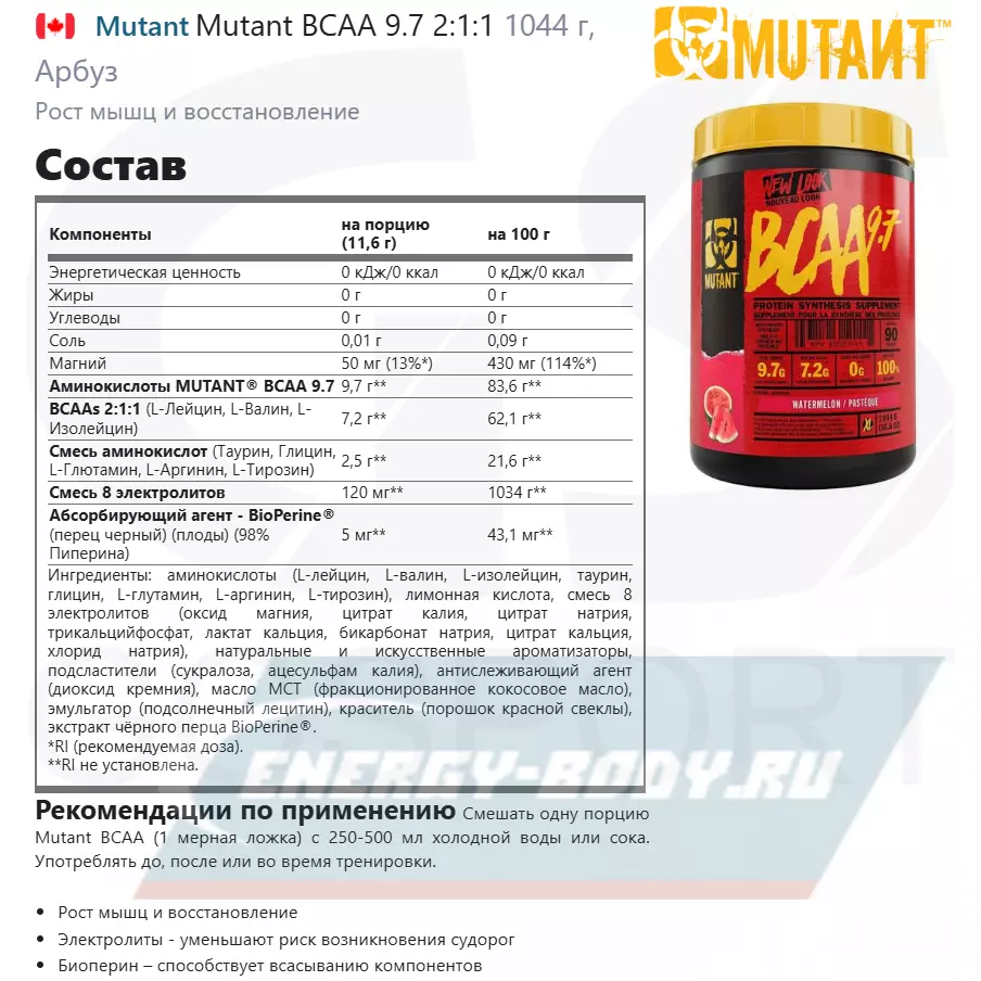- Полное описание Mutant BCAA 9.7 2:1:1