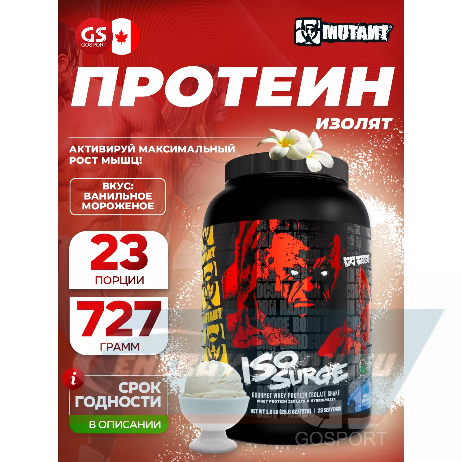 Mutant Iso Surge 727 г, Ванильное мороженое — Для набора и поддержки мышечной массы