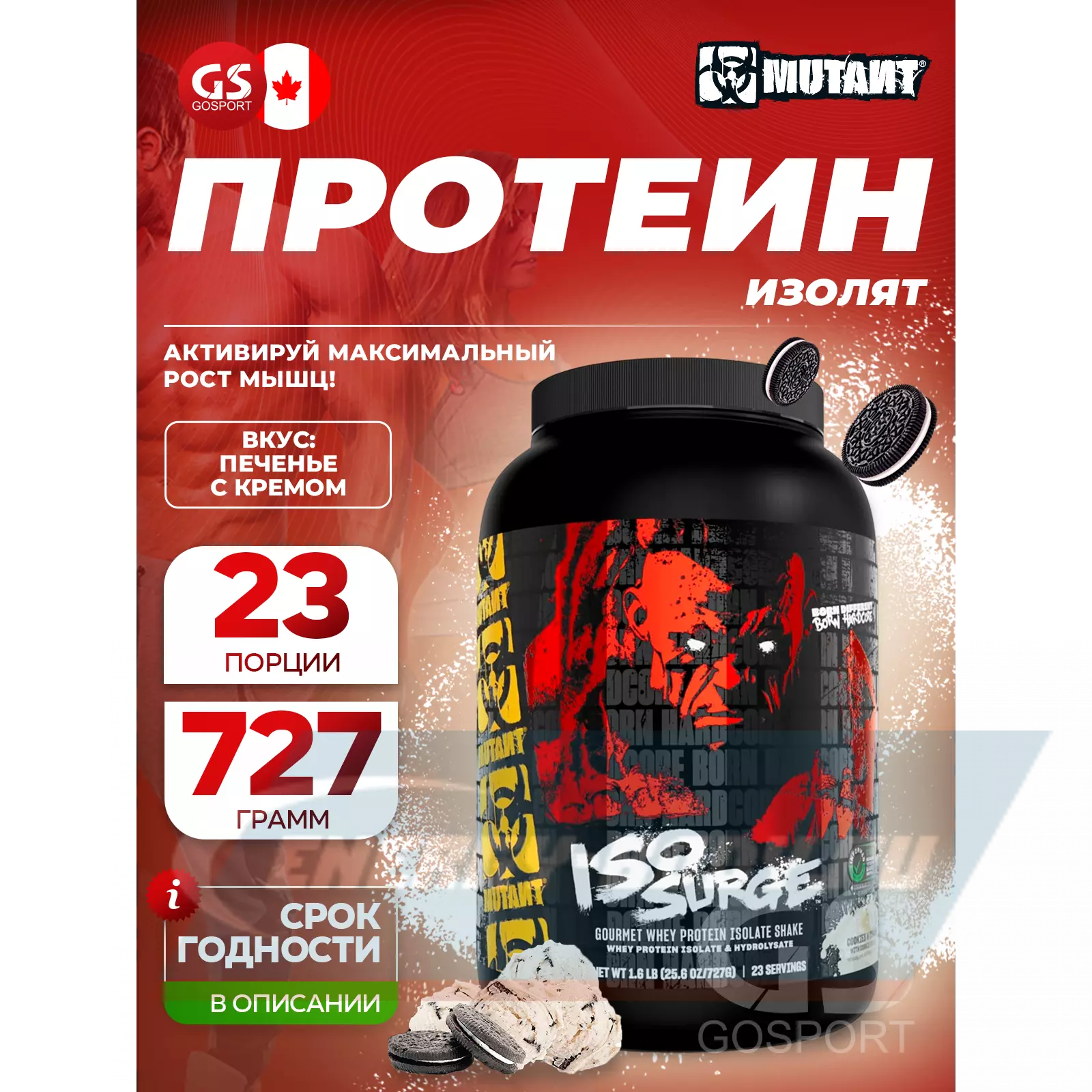 Mutant Iso Surge 727 г, Печенье и Сливки — Для набора и поддержки мышечной массы