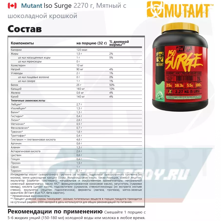 Mutant Iso Surge 2270 г, Мятный с шоколадной крошкой — Для набора и поддержки мышечной массы