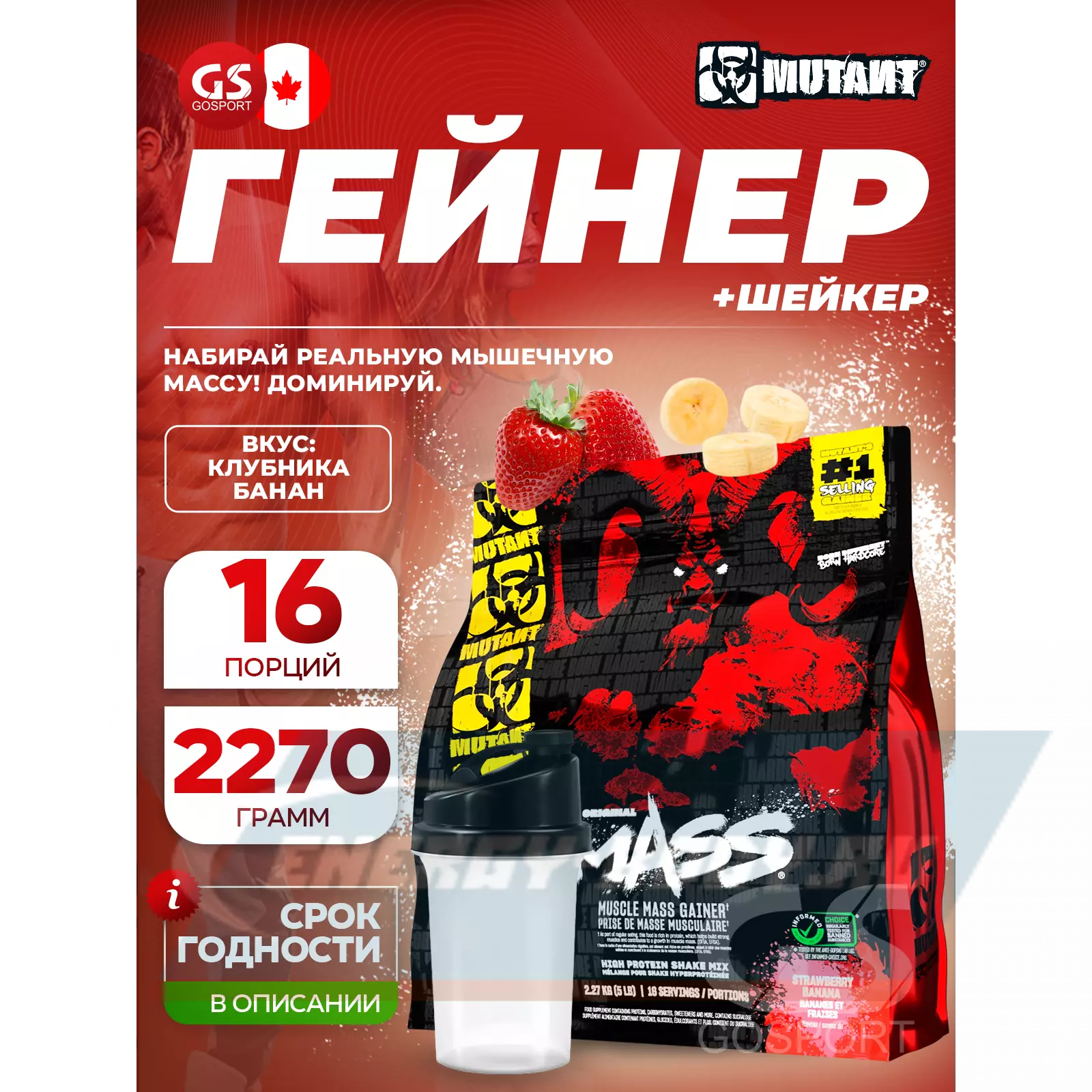 Mass 2270 г + шейкер, Клубника-банан