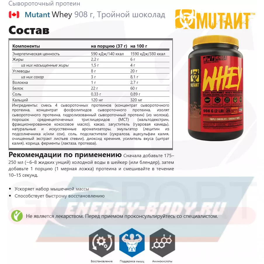 - Протеин MUTANT WHEY со вкусом клубничного крема, предназначен для роста крепких мышц, на 100% лучше, чем любой обычный сывороточный протеин. Рецептура MUTANT WHEY не сравнима ни с чем, что вы пробовали раньше.