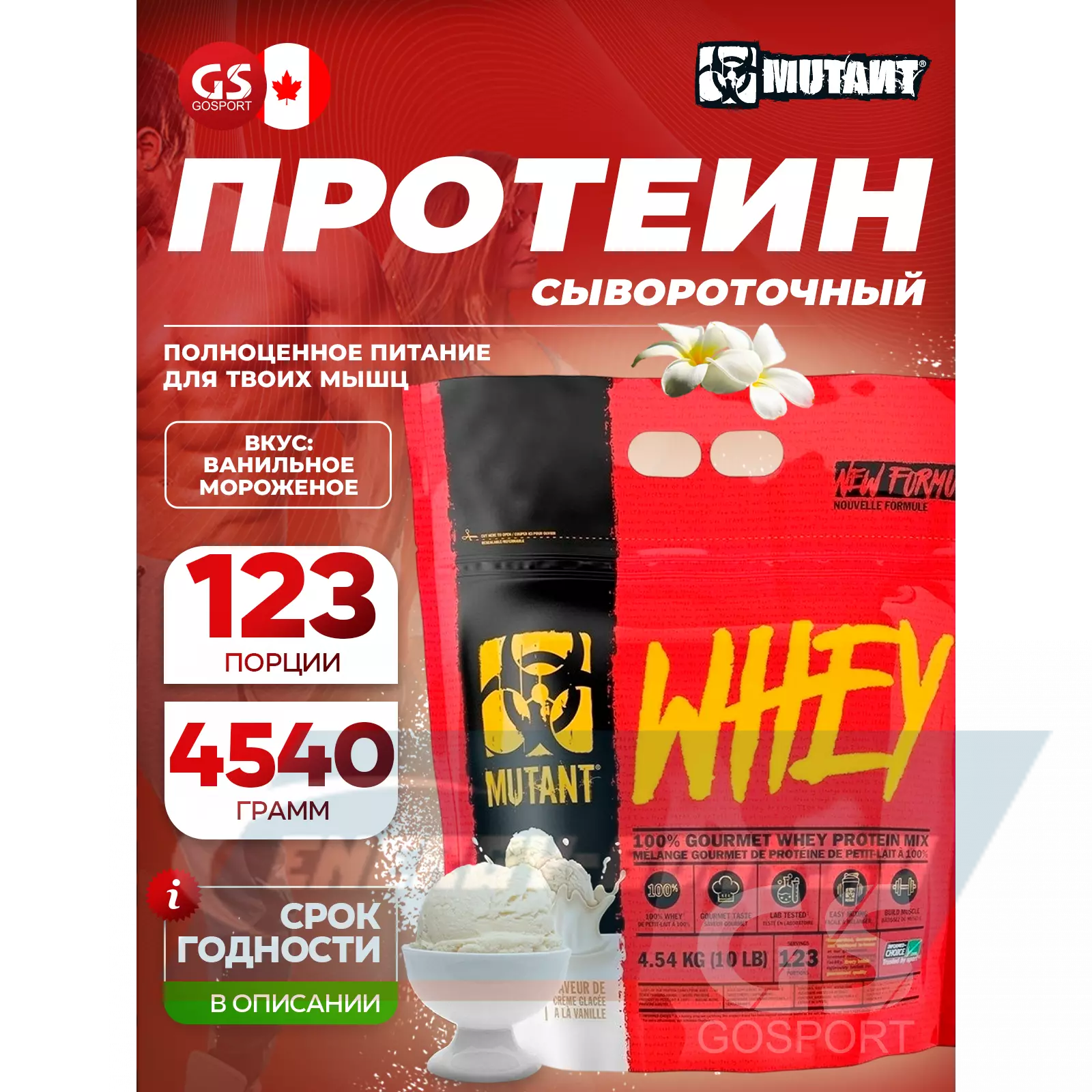 Mutant Whey 4540 г, Ванильное мороженое — Для набора мышечной массы и восстановления