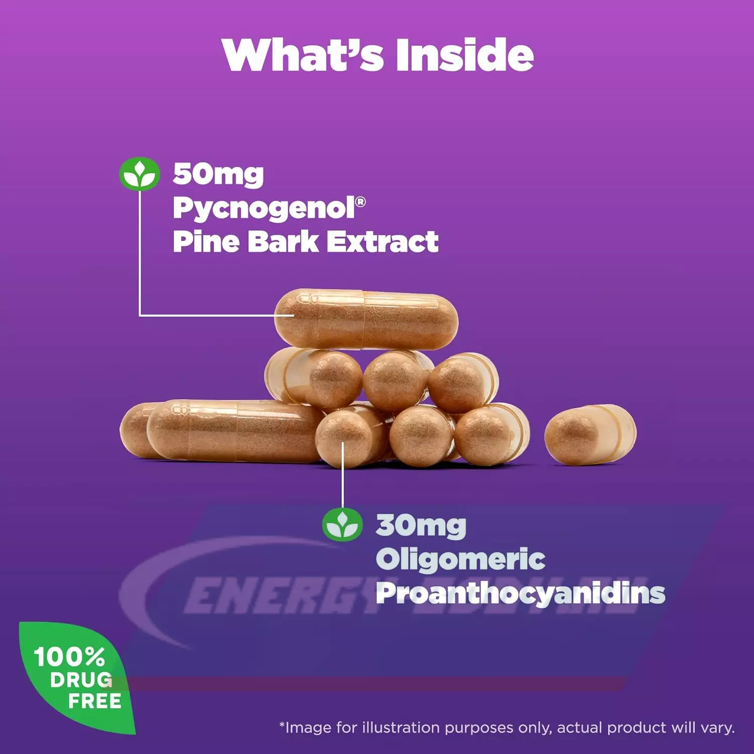 Кроме того что пиктогенол борется со свободными радикалами, он еще и помогает вырабатывать коллаген и гиалуроновой кислоту, что дает видимый омолаживающий эффект уже при курсовом приеме.Спортсмены могут заметить дополнительное увеличение мышечной ткани и концентрации так как экстракт сосны дает увеличение эпителиального оксида азота, который помогает расширить ваши кровеносные сосуды, укрепляет стенки капилляров и сосудов.