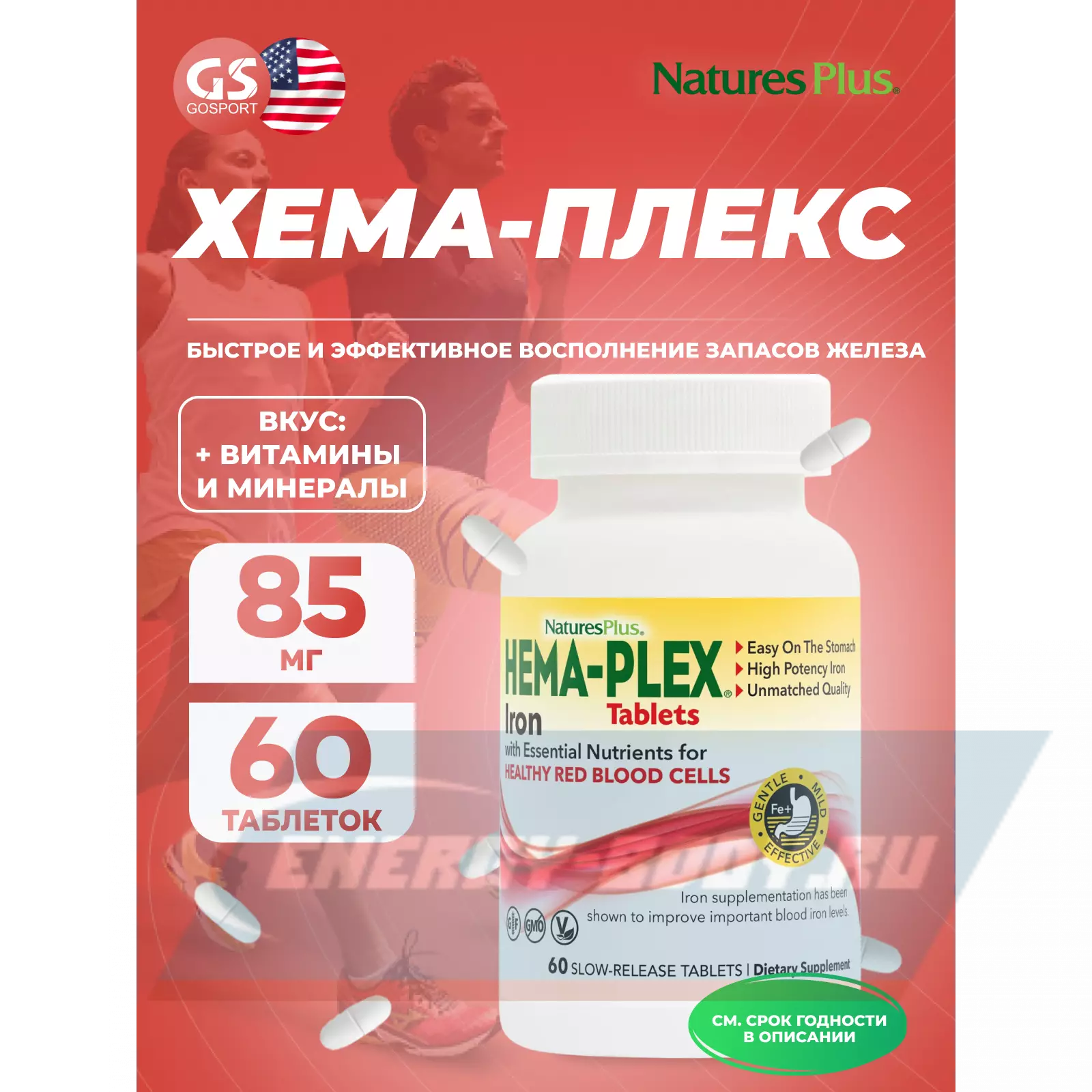NaturesPlus Hema-Plex 60 таблеток — для энергии, гемоглобина и иммунитета