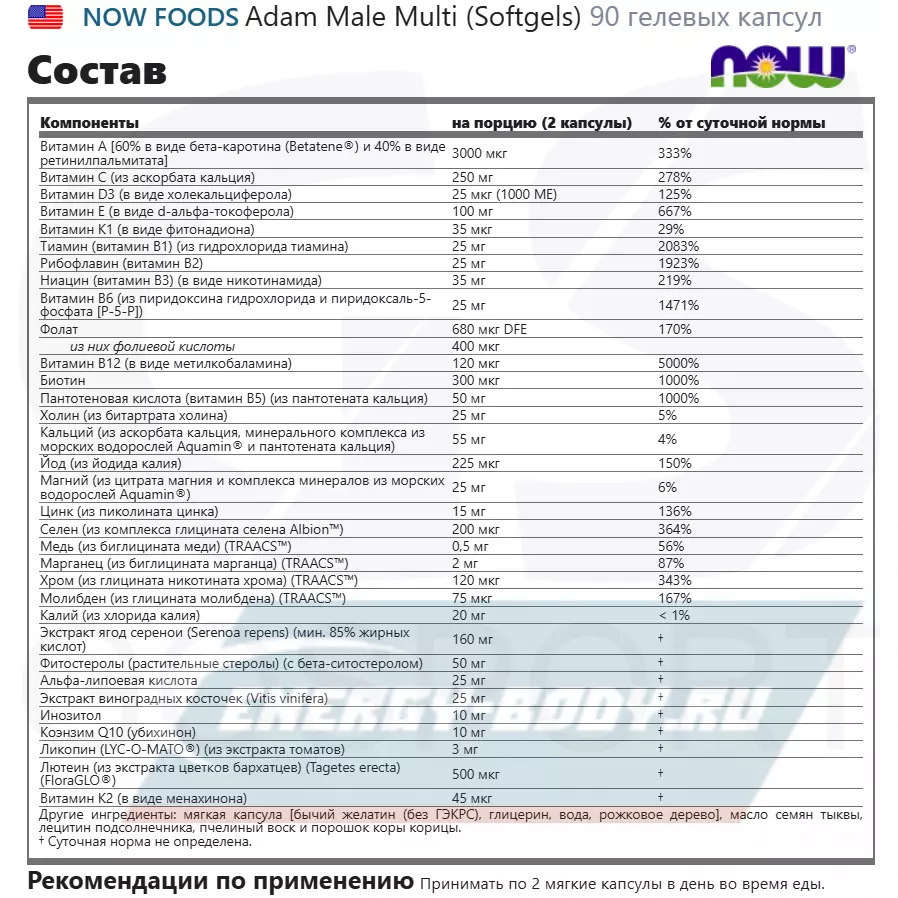 Состав NOW FOODS Adam Male Multi (Softgels)