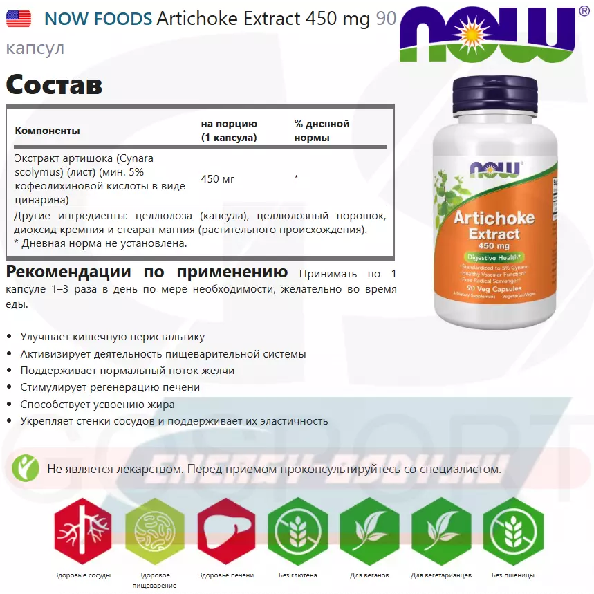 Современный ритм жизни негативно сказывается на здоровье всех людей, а в особенности тех, кто имеют хронические заболевания и вредные привычки. Artichoke Extract (Экстракт артишока) Now Foods является эффективной пищевой добавкой на основе уникальной лекарственной травы.