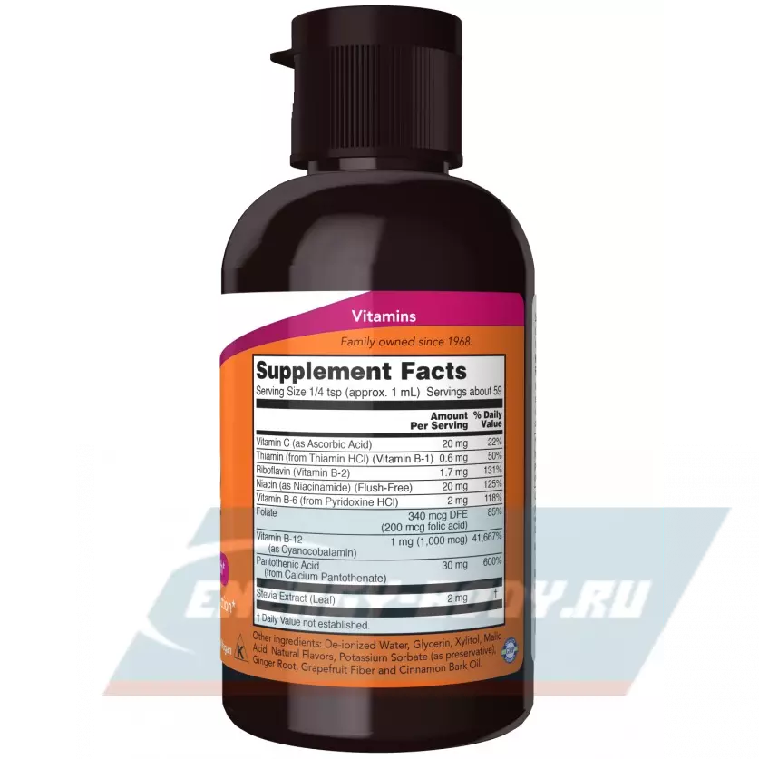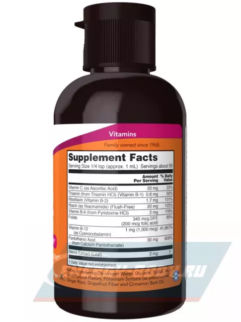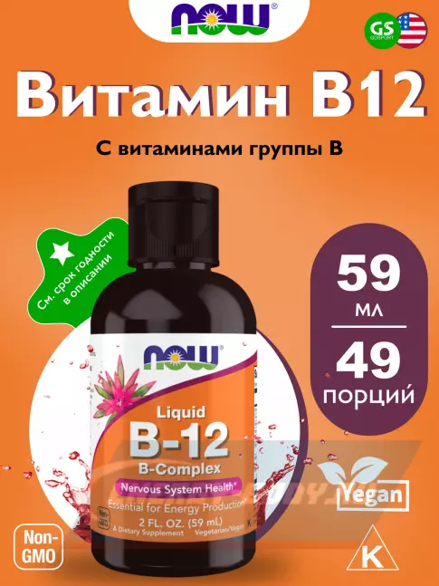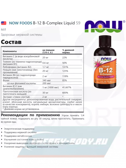 Свойства NOW FOODS B-12 B-Complex Liquid (2 oz) 59 ml:
