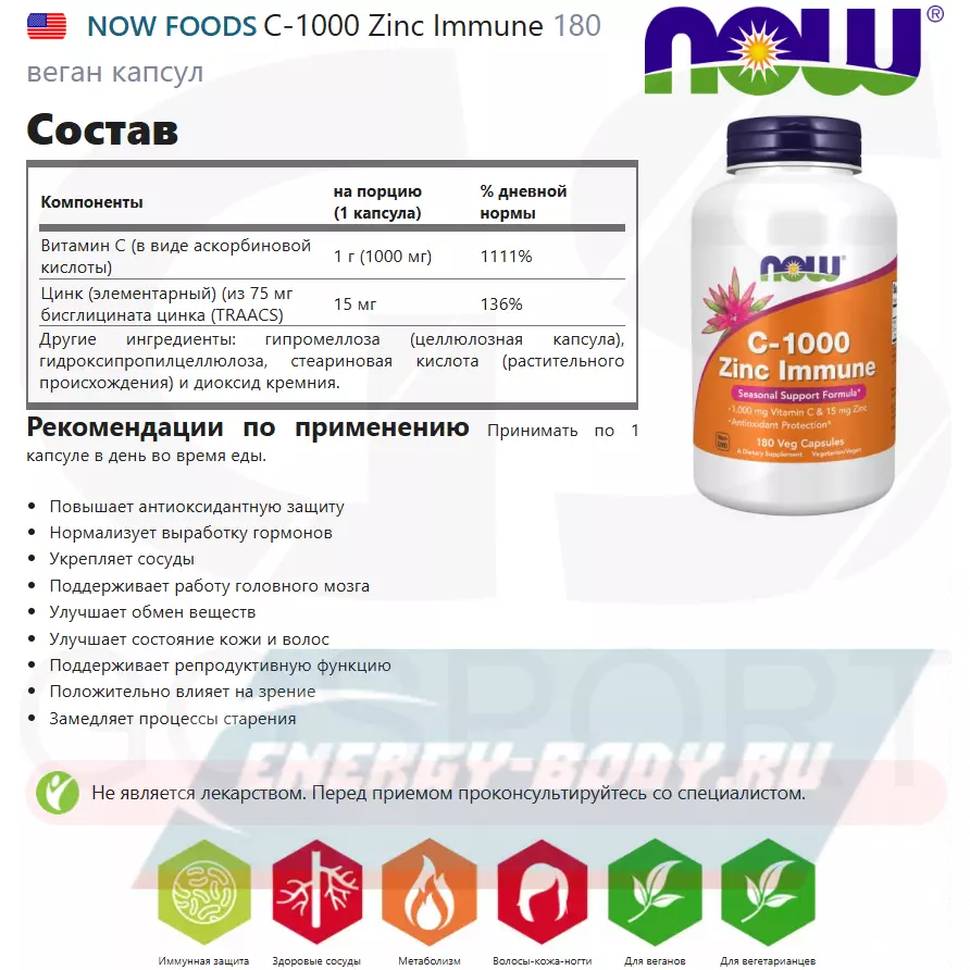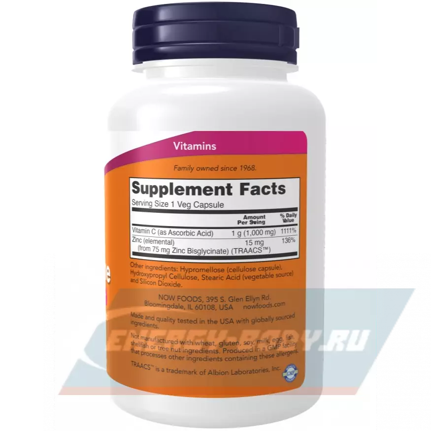 Состав NOW FOODS C-1000 Zinc Immune