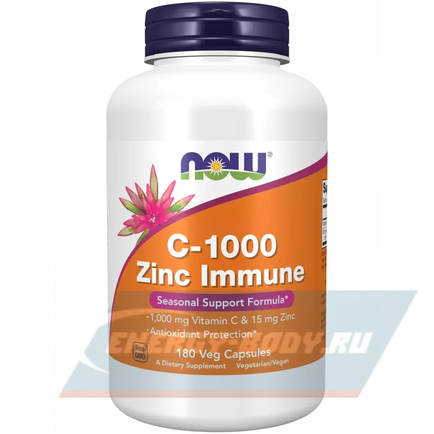 C-1000 Zinc Immune от NOW – это комплекс из двух веществ в наиболее качественных и биодоступных формах, которые имеют синергетическое воздействие на иммунитет и защитные функции организма. Витамин С необходим для поддержания основных свойств иммунной защиты, противодействия воспалительным процессам и защите клеток от оксидативного стресса. Витамин С влияет на работу почти всех систем и тканей, а также участвует в выработке многих ферментов и других важных биохимических реакциях. Также витамин улучшает здоровье кожи, устраняет накожные дефекты и воспалительные процессы, способствует омоложению эпидермиса.