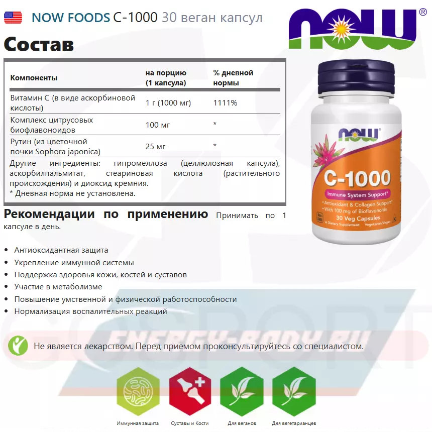 Состав NOW FOODS C-1000
