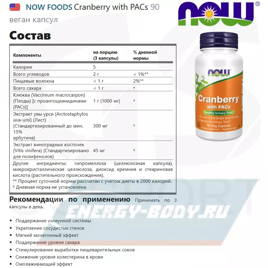 Состав NOW FOODS Cranberry with PACs