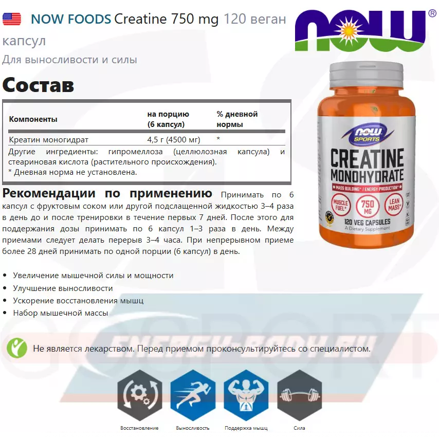 - Полное описание Creatine 750 mg