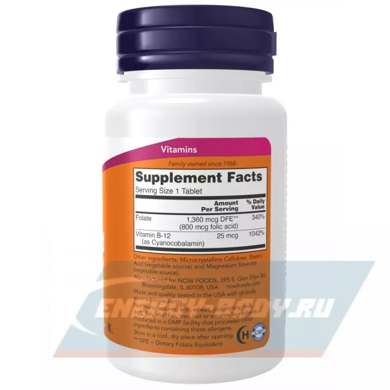 - Полное описание Folic Acid 800 mcg + B-12 (Cyanocobalamin) 25 mcg