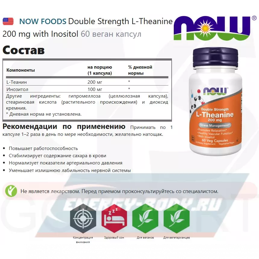 - Полное описание Double Strength L-Theanine 200 mg with Inositol