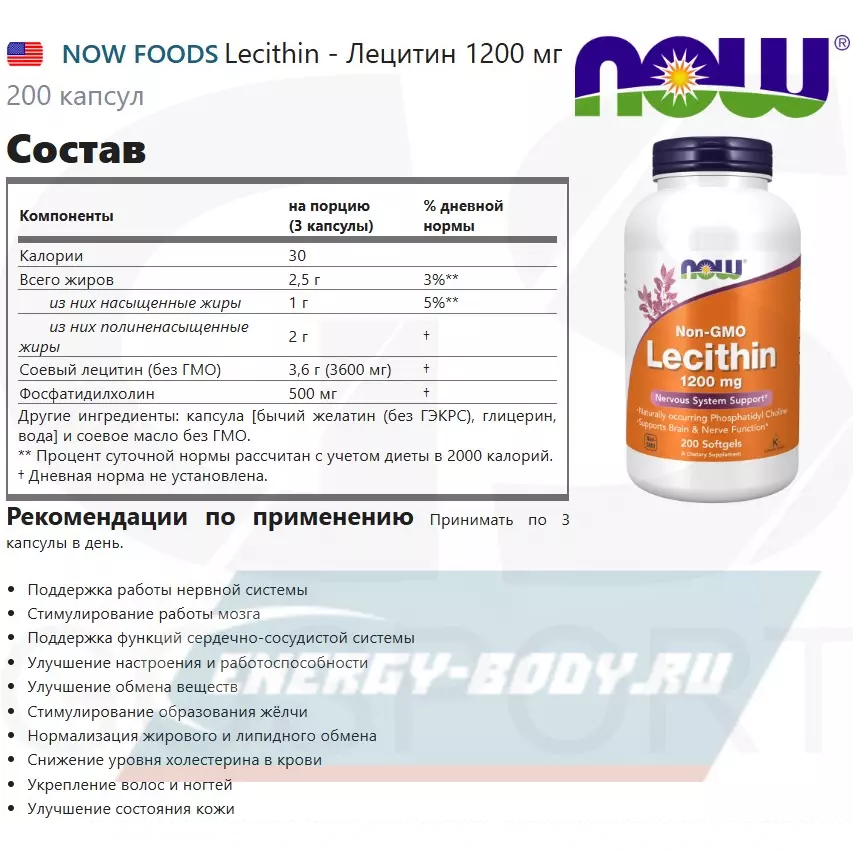 Состав NOW FOODS Lecithin - Лецитин 1200 мг