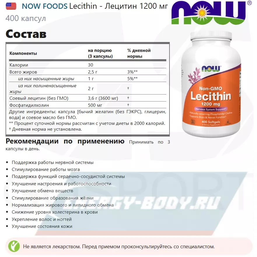 - Полное описание Lecithin - Лецитин 1200 мг