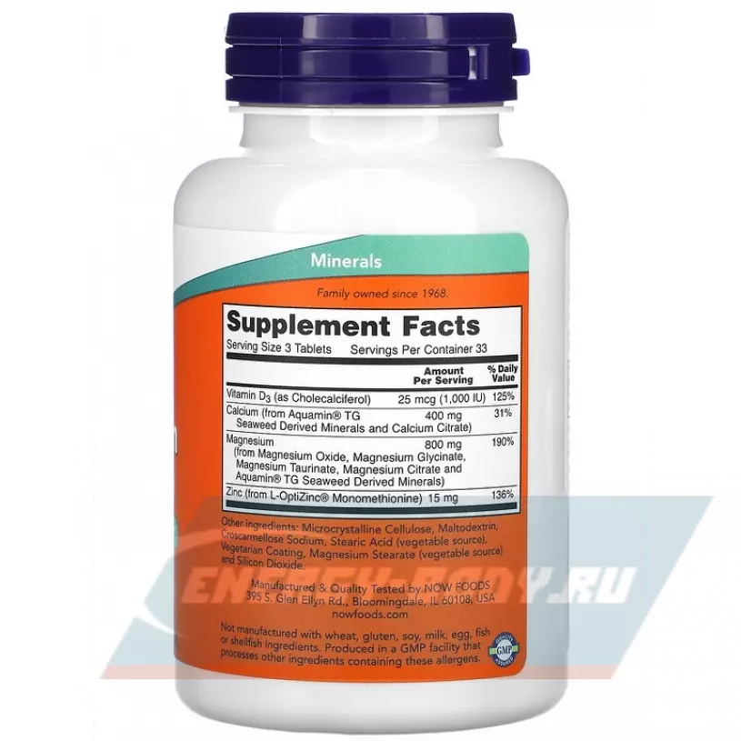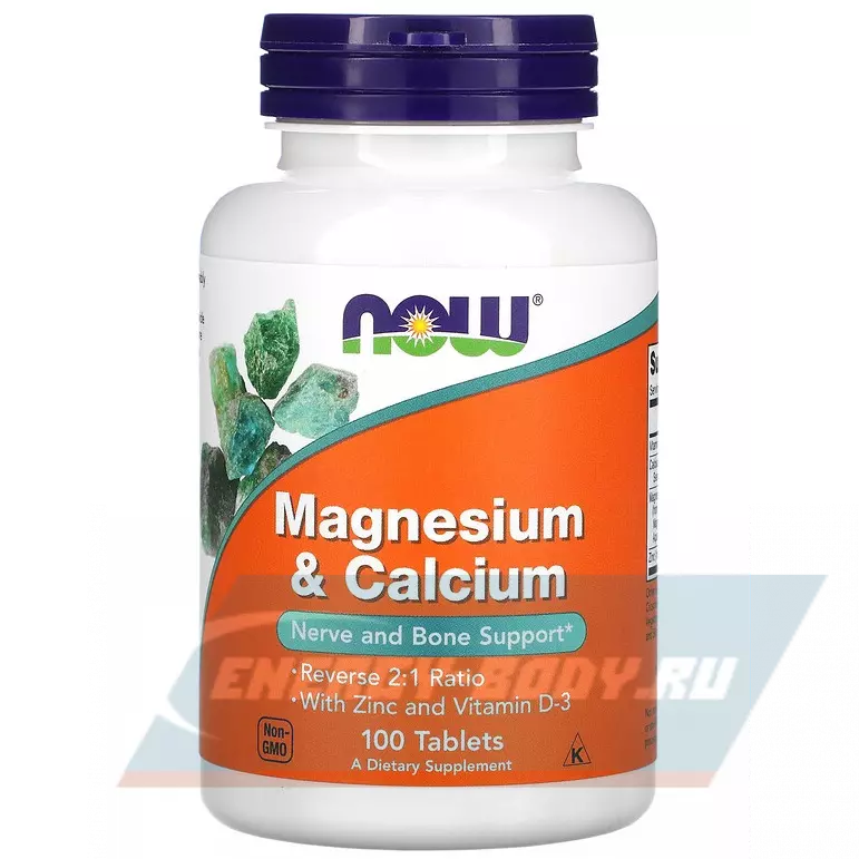 Продукция NOW Calcium & Magnesium дополнительно содержит витамин D и цинк, предлагая сбалансированный и взаимодействующий состав из незаменимых минералов. Эта продукция укрепляет кости и зубы, способствует здоровой ферментной деятельности и оказывает антиоксидантную поддержку. Цинк и магний участвуют в сотни ферментных систем в организме. Магний – это минерал, который жизненно необходим для выработки энергии и обмена веществ, сокращения мышц, передачи нервных импульсов, и костной минерализации.