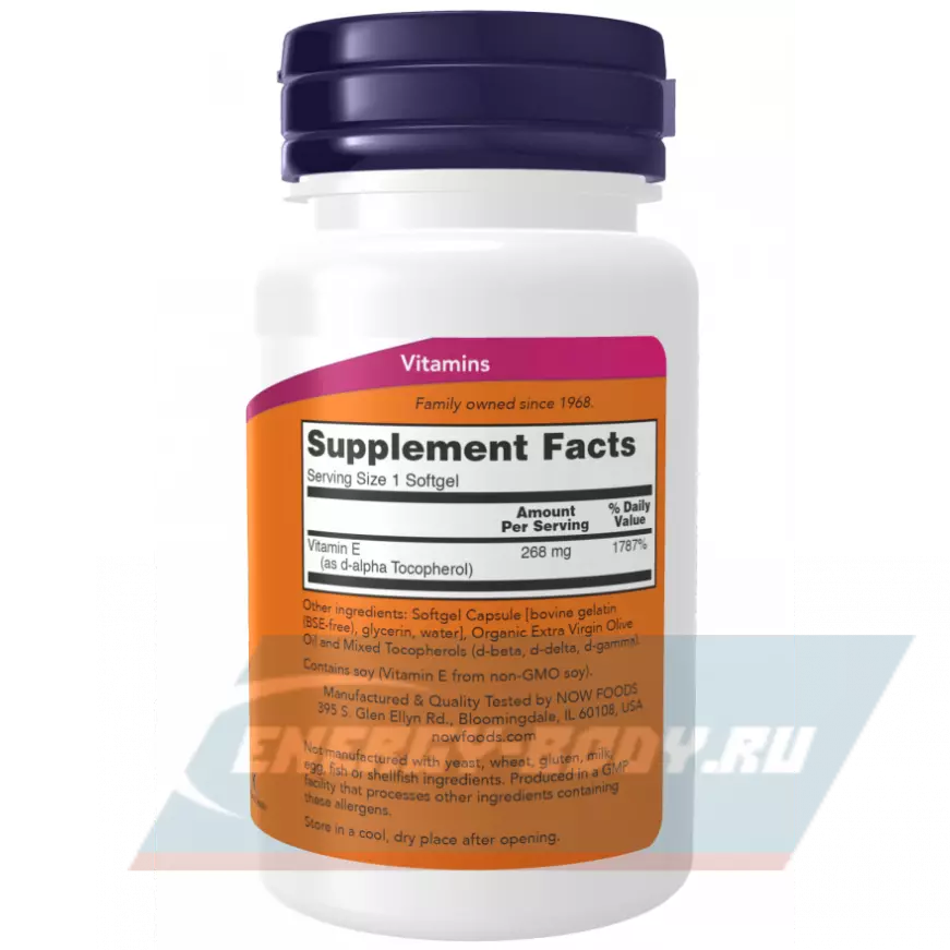 Витамин E (400 мг) от компании NOW Foods содержит натуральные токоферолы, которые зарекомендовали себя как эффективные антиоксиданты. Регулярный прием препарата способствует укреплению иммунной системы и препятствует развитию заболеваний половой системы.
