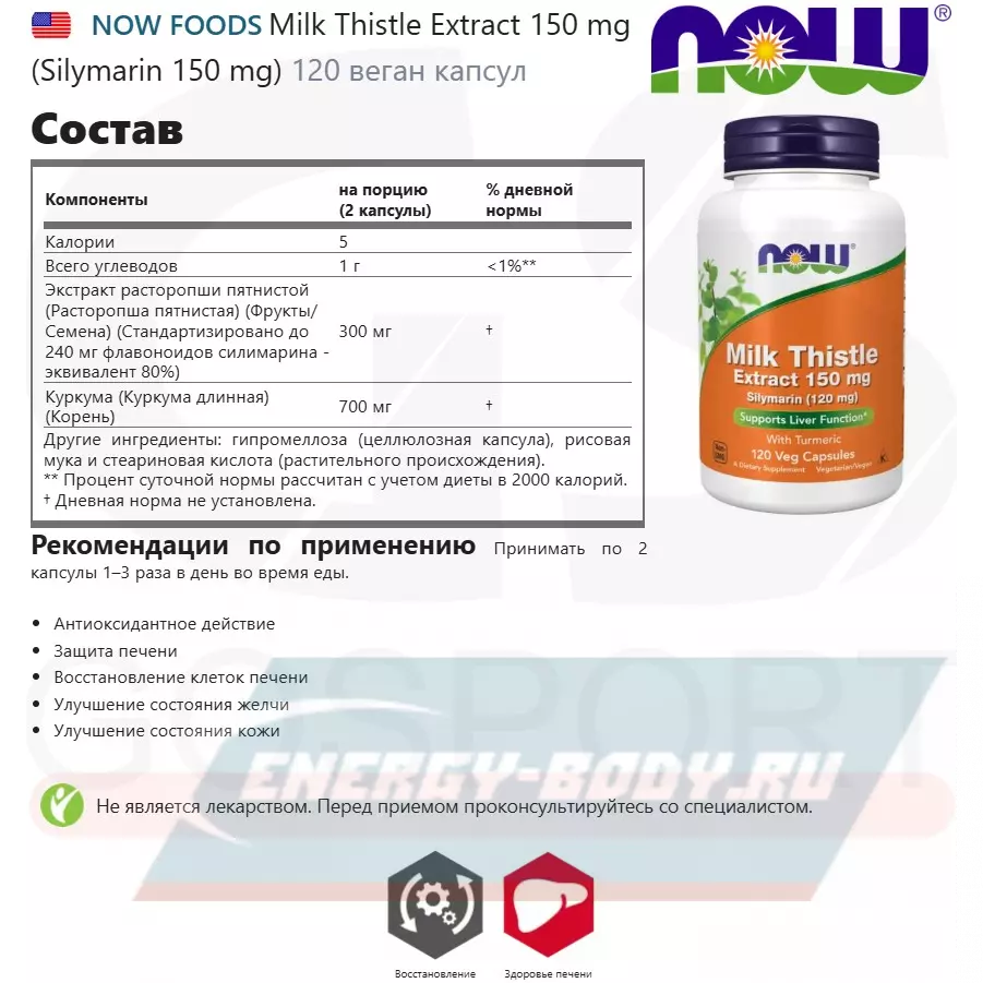 Особенности состава и для чего нужен NOW Silymarin 150 мг?