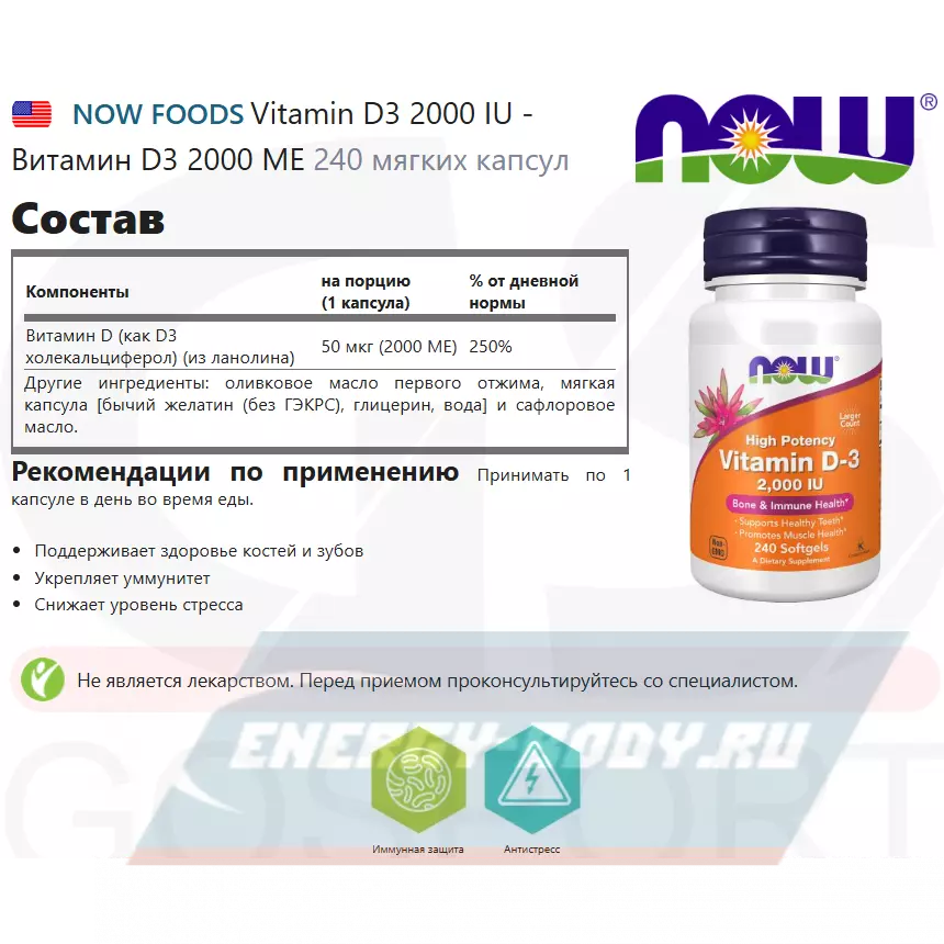 - Полное описание Vitamin D3 2000 IU - Витамин D3 2000 МЕ