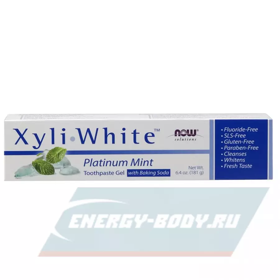 Зубная гель паста Now Foods Solutions XyliWhite Освежающая мята с пищевой содой без фторида, не содержит фтора; в качестве основного ингредиента используется натуральный ксилитол. Содержит только самые чистые ингредиенты. Укрепляет и отбеливает зубы. Идеально подходит для взрослых и детей. Без фтора. Без лаурилсульфата натрия. Без глютена. Без парабенов. Уменьшает налет и эффективно отбеливает. Свежий мятный вкус.