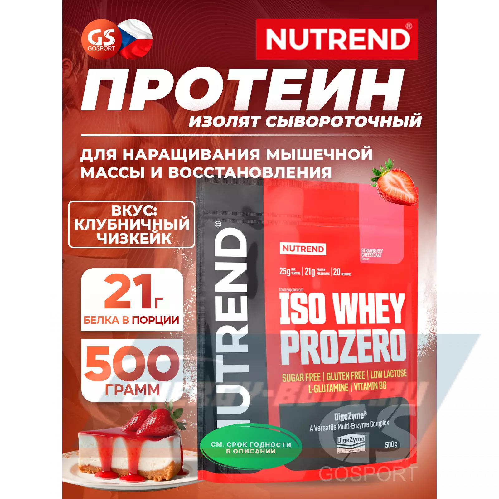 NUTREND Iso Whey Prozero 500 г, Клубничный чизкейк — Для наращивания мышечной массы и восстановления