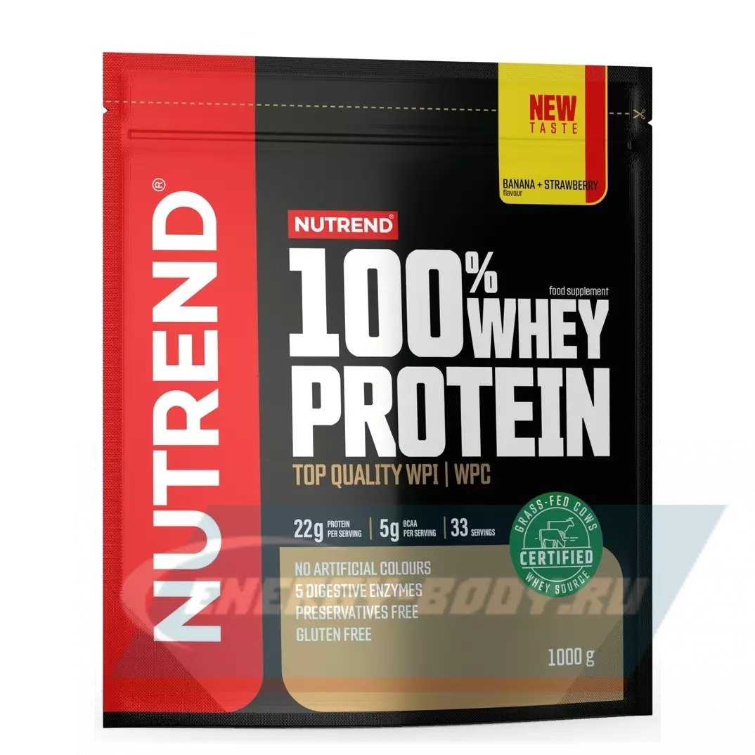 NUTREND 100% Whey Protein 1000 г, Банан - Клубника — Рост мышечной массы и восстановление