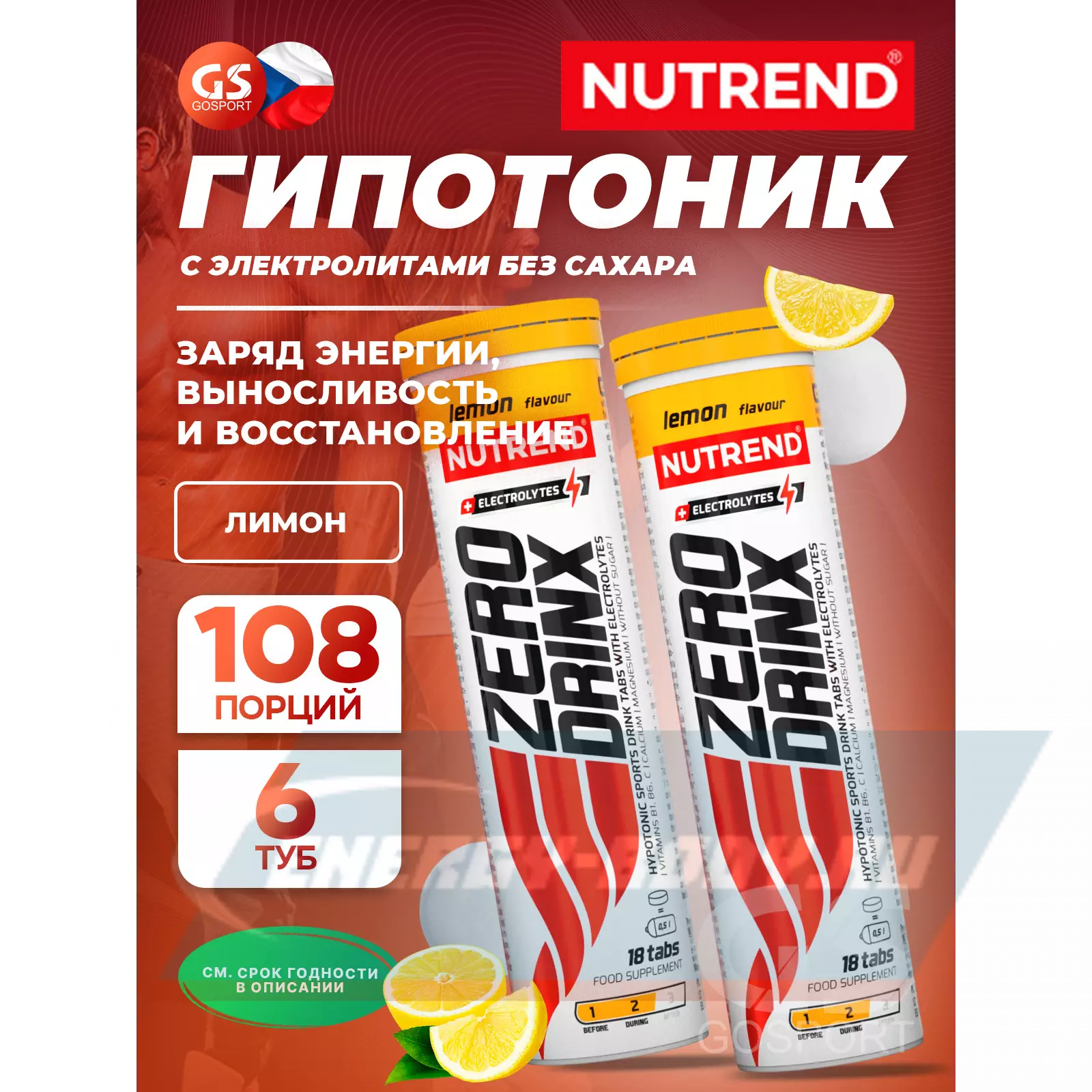 NUTREND ZERODRINX TABS 6 x 18 таблеток, Лимон — Заряд энергии, выносливость и восстановление