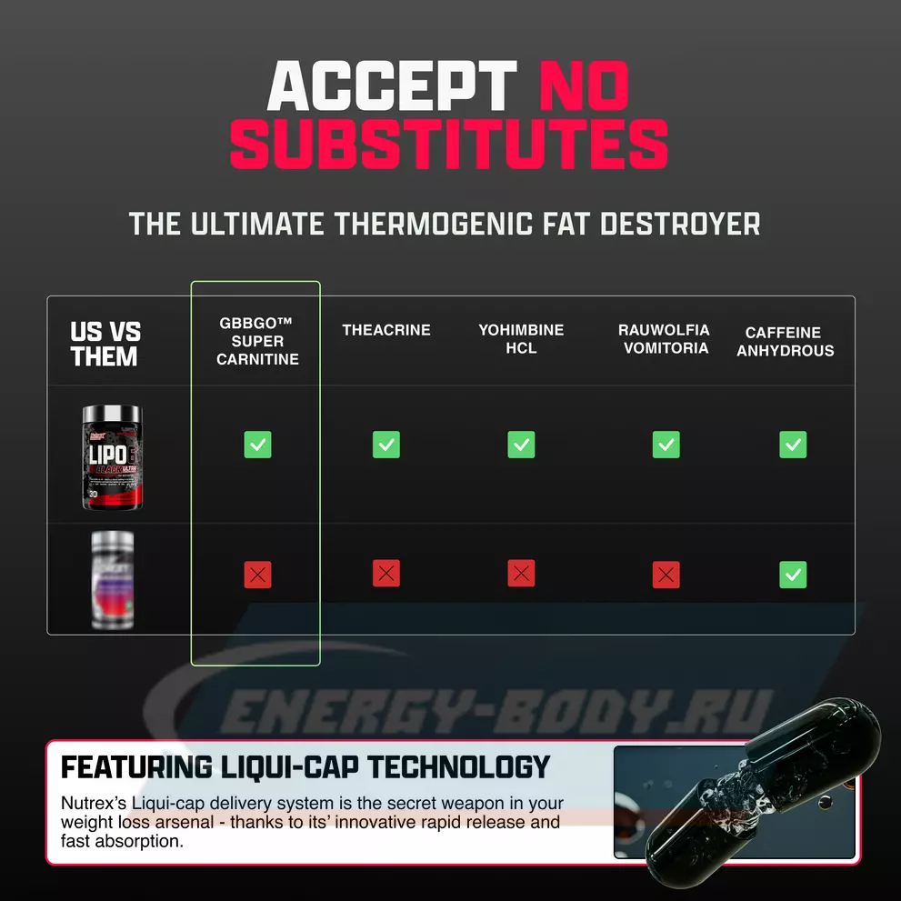 Жиросжигающий комплекс Lipo 6 Black US от Nutrex как источник безводного кофеина, Advantra Z, экстрактов бакопы, винпоцетина, йохимбина поможет вам эффективнее сжигать жир и снабжаться при этом топливом для улучшения качества своих тренировок. При этом каждый из компонентов данного спортивного питания вносит свой вклад в избавление вас от лишнего веса.