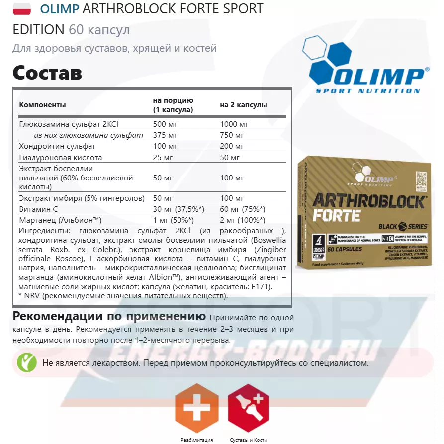 OLIMP ARTHROBLOCK FORTE SPORT EDITION 60 капсул — Для здоровья суставов, хрящей и костей