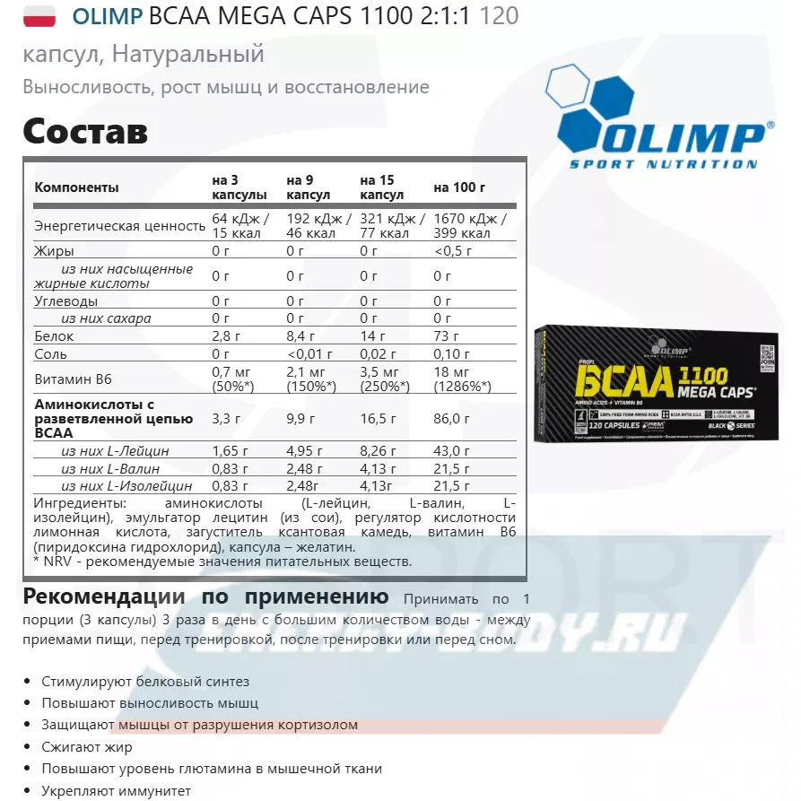 - Полное описание BCAA MEGA CAPS 1100 2:1:1