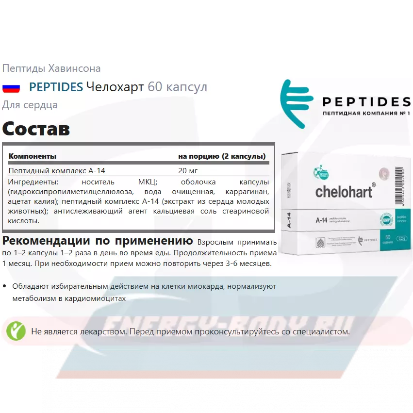 Натуральные пептиды сердца - Челохарт 20 капсул