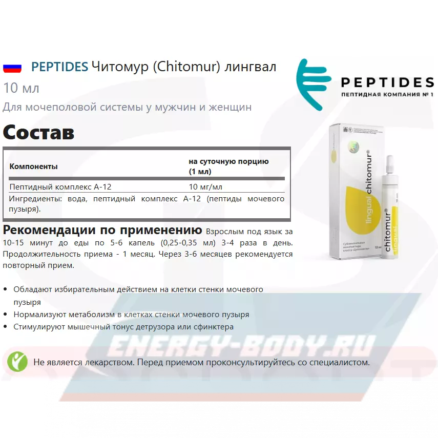 Состав PEPTIDES Читомур (Chitomur) лингвал