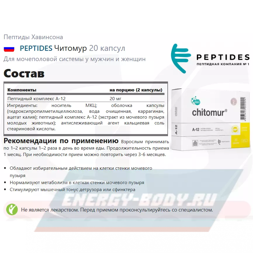 PEPTIDES Читомур (Chitomur) 20 капсул — Нормализация работы мочеполовой системы