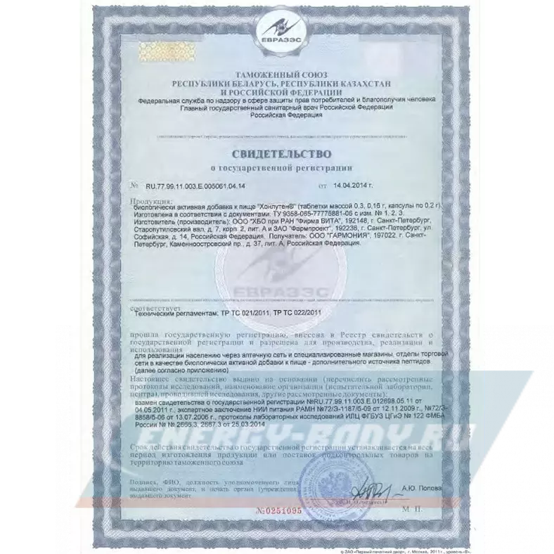 Ингредиенты: носитель МКЦ; оболочка капсулы (гидроксипропилметилцеллюлоза, вода очищенная, каррагинан, ацетат калия); антислеживающий агент кальциевая соль стеариновой кислоты, пептидный комплекс АС-7 (глицин, глутаминовая кислота, аспарагиновая кислота).