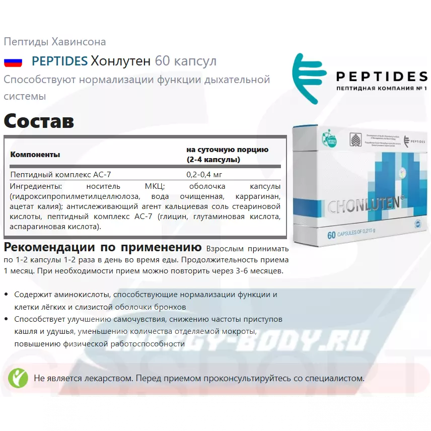 PEPTIDES Хонлутен (Chonluten) 60 капсул — Нормализация функции легких и слизистой оболочки бронхов