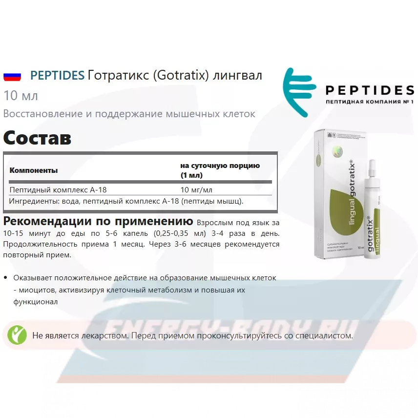 Состав PEPTIDES Готратикс (Gotratix) лингвал