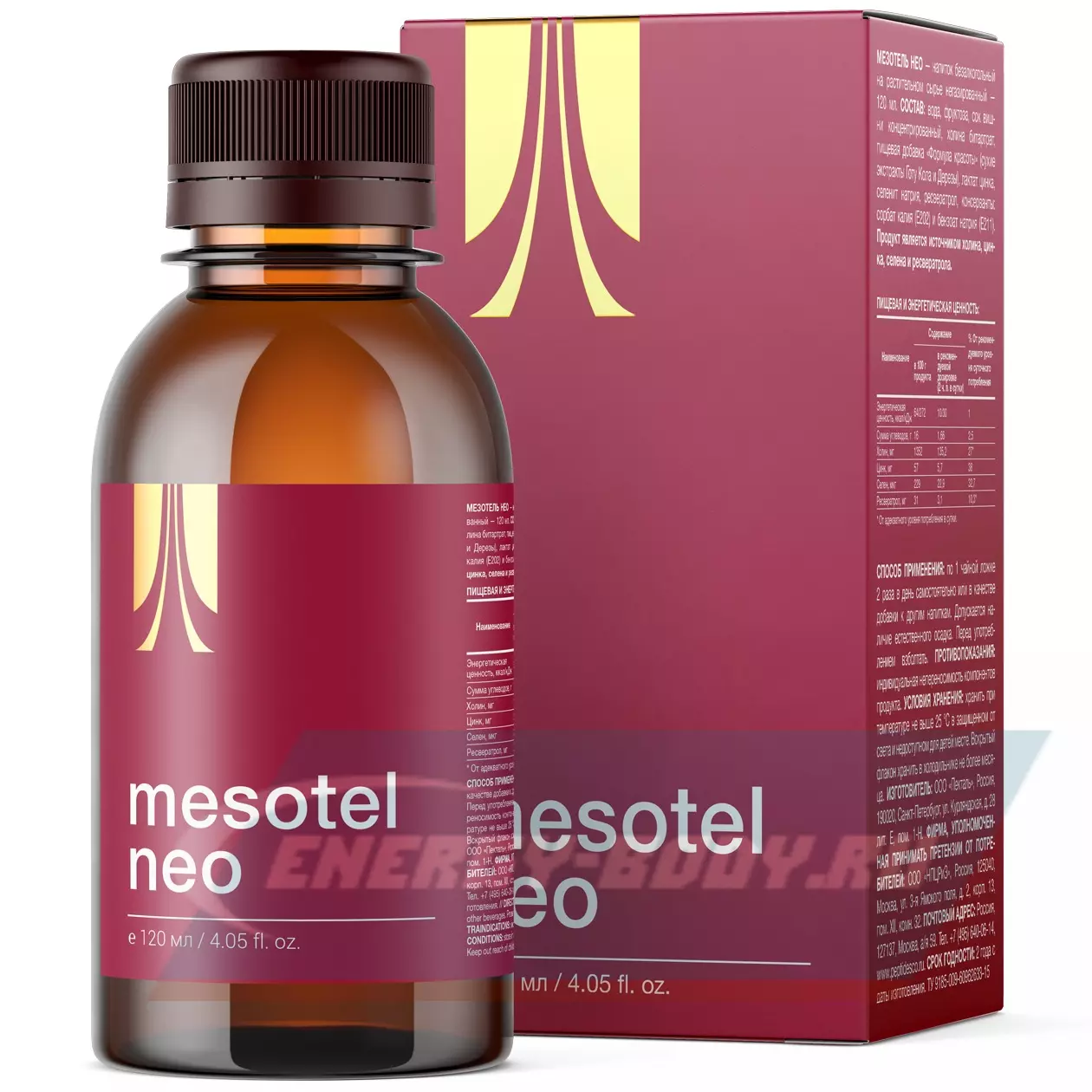 Омолаживающий препарат на основе холина, обогащен экстрактом готу колы и дерезы, цинком, витаминами и ресвератролом. Мезотель Нео обладает ярко выраженным антиоксидантным действием, а также противовирусным и противомикробным, способствует выведению из организма солей тяжелых металлов и токсинов, повышает иммунитет, снижает риск женской онкопатологии. Мезотель Нео улучшает работу сердечно-сосудистой и нервной системы, улучшает мозговое кровообращение, препятствует развитию атеросклероза, нормализует жировой обмен, повышает устойчивость организма к стрессорным факторам. Мезотель Нео замедляет процессы старения, стимулирует регенерацию клеток, улучшает текстуру, влажность, упругость и цвет кожи, способствует разглаживанию мелких морщин.