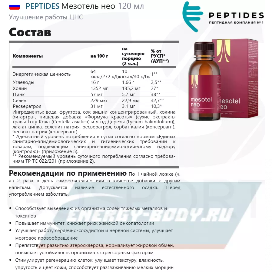 Состав PEPTIDES Мезотель нео (Mesotel neo)