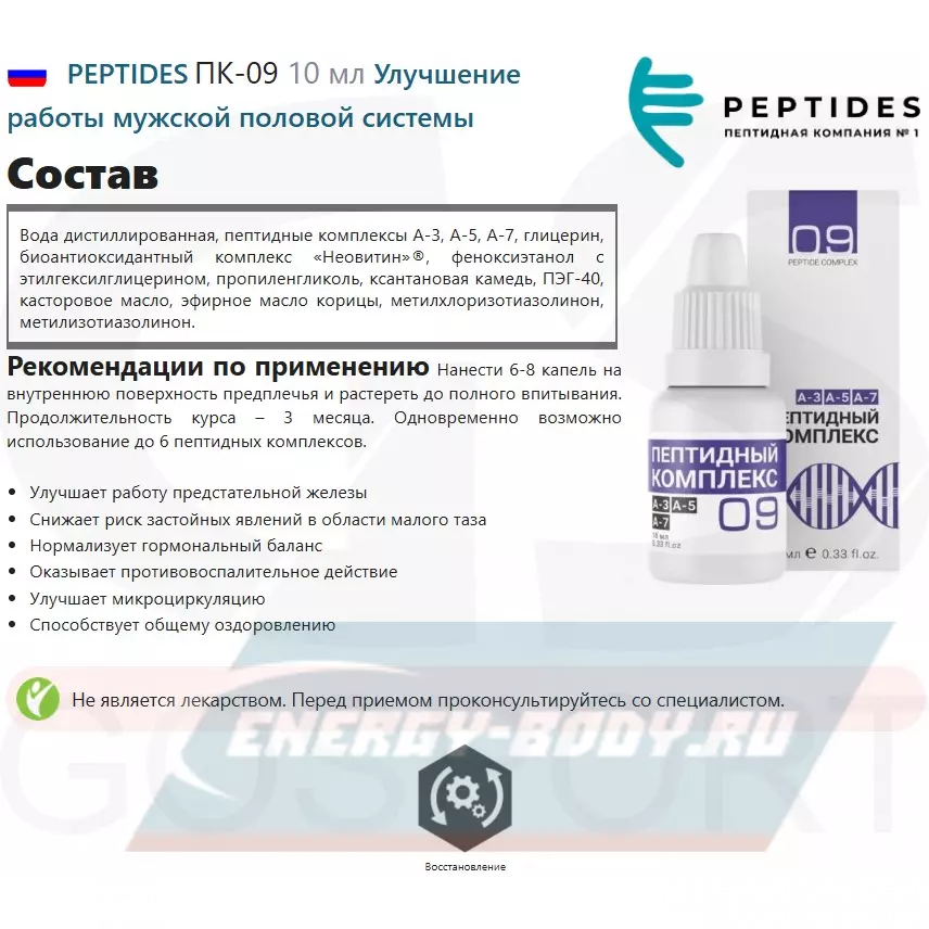 Пептидный комплекс для мужской половой системы. Содержит пептиды – сосудов, мозга, печени.