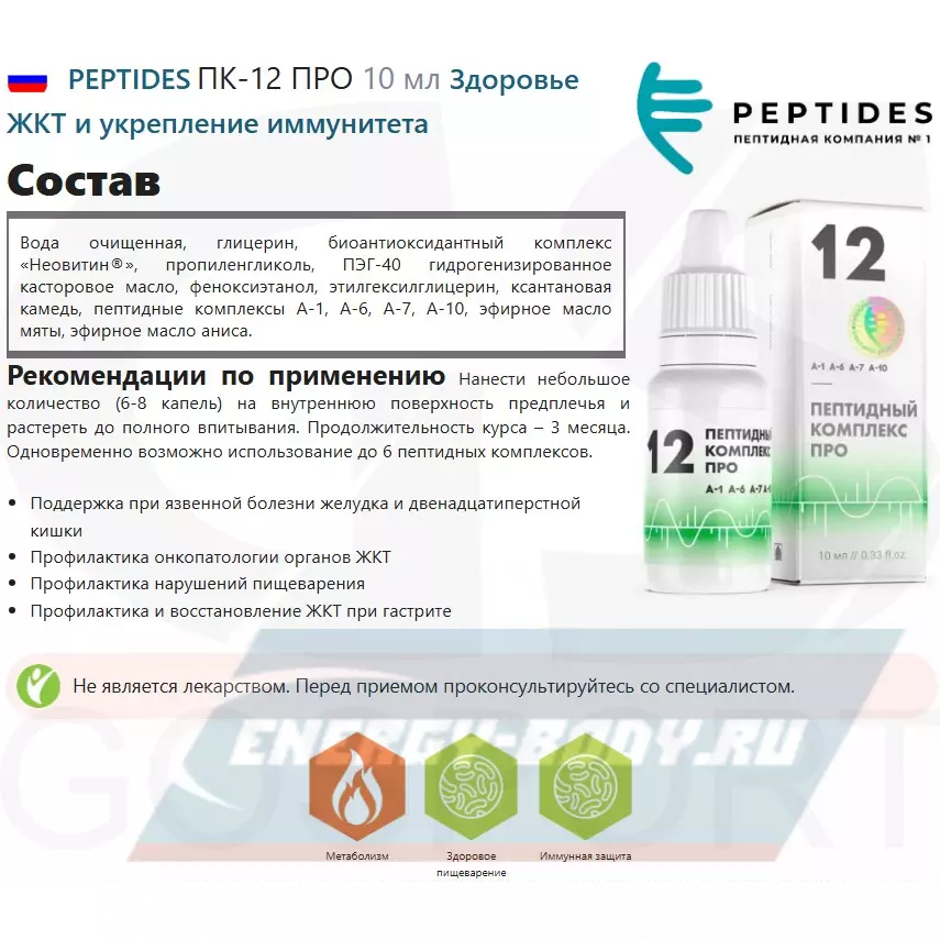 Обновленный пептидный комплекс 12 PRO для ЖКТ.