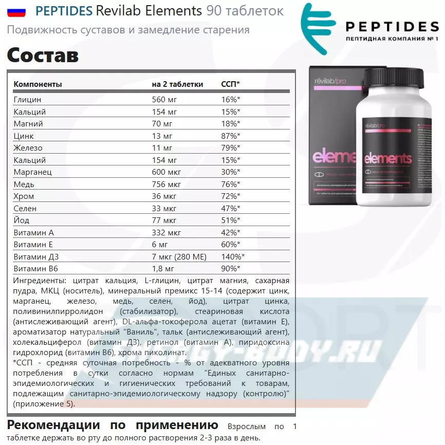 PEPTIDES Revilab Elements 90 таблеток — Витамины А, Е, D3, В6, микро и макроэлементы