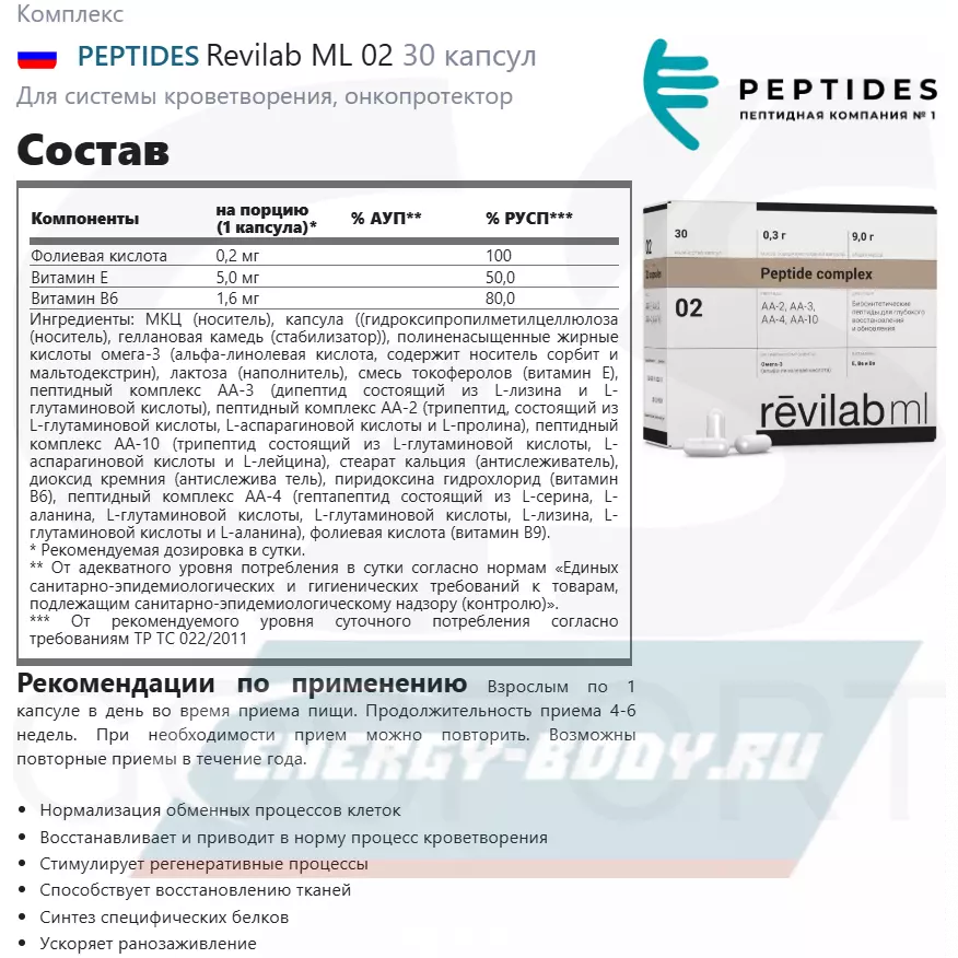 Новейший мультифункциональный препарат, характеризующийся ярко выраженным антианемическим воздействием, избирательным действием на клетки иммунной системы, благотворным влиянием на реакции гуморального и клеточного иммунитета. Высокая эффективность биорегулятора обусловлена его инновационным составом, в котором присутствуют синтезированные короткие пептиды В и Т-звена костного мозга и печени, полезные витамины и полинасыщенные кислоты, обладающие положительным воздействием на организм в целом. Оптимальное сочетание перечисленных компонентов нормализует работу не только кровеносной системы, но и других органов и систем человеческого тела.