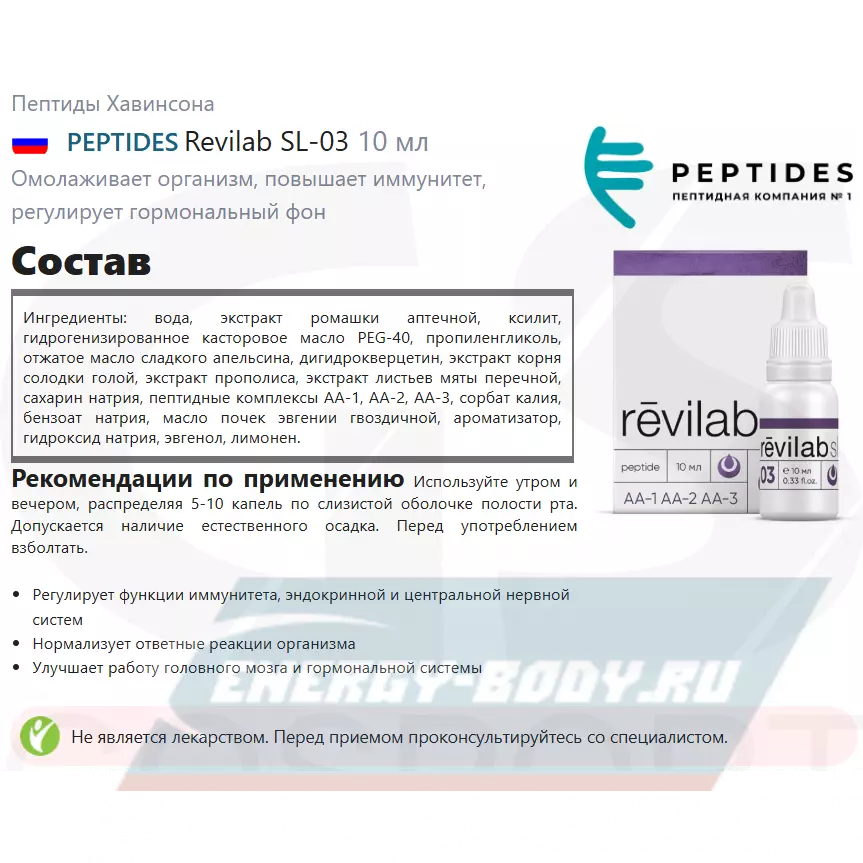 PEPTIDES Revilab SL-03 10 мл — Омолаживает организм, повышает иммунитет, регулирует гормональный фон