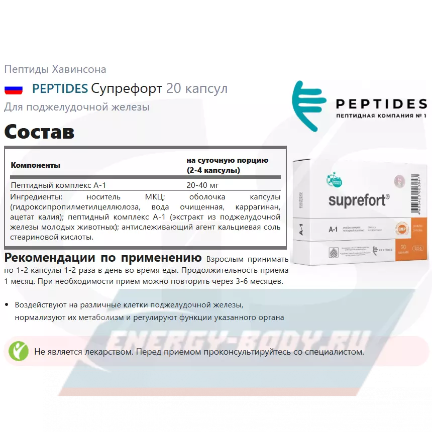 PEPTIDES Супрефорт (Suprefort) 20 капсул — Восстанавливает работу поджелудочной железы