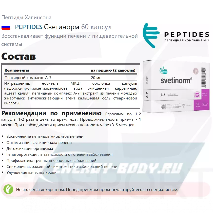 PEPTIDES Светинорм (Svetinorm) 60 капсул — Здоровье печени и детоксикация организма
