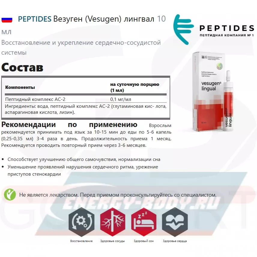 Состав PEPTIDES Везуген (Vesugen) лингвал
